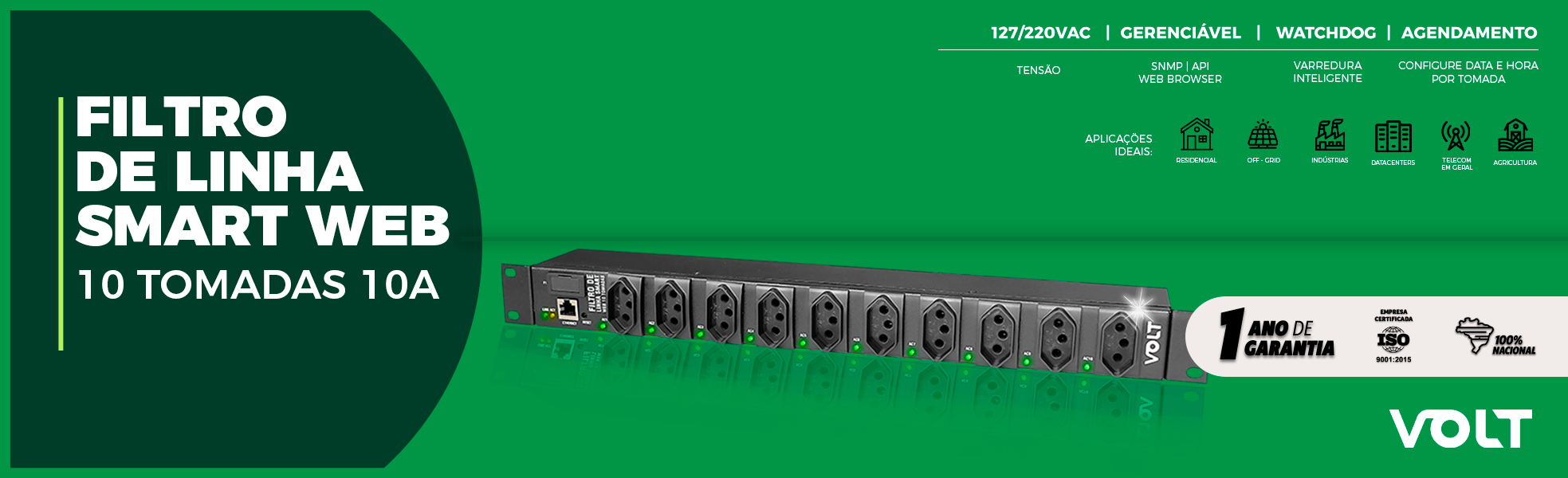 Desenvolvido e fabricado no Brasil, os Filtros de Linha Smart Web possuem 1 ano de garantia.
