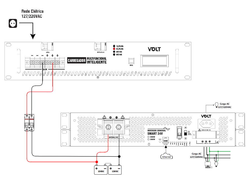 O Inversor Senoidal 2000W foi desenvolvido para alimentar equipamentos que necessitam de alimentação em tensão alternada (VAC) em 127/220VAC, com funcionamento ininterrupto independente de oscilações da rede elétrica, podendo operar em sistemas de energia solar Off-Grid juntamente com Controladores de
