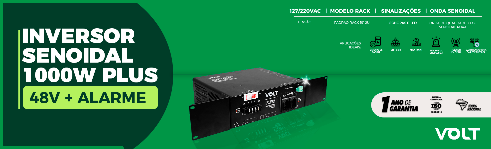 | 37.03.034 | ISP1000 - INVERSOR SENOIDAL 1000W PLUS + ALARME 48V 127VAC |
